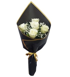 Pendik Siyah Ambalajda 5 Beyaz Gül buketi