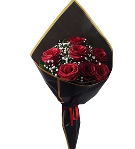 Siyah Ambalajda 7 Kırmızı Gül buketi