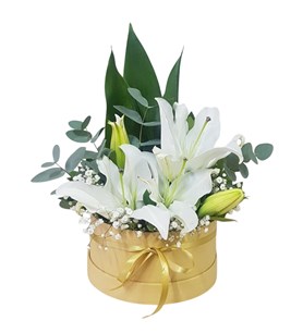 Kutusunda Turuncu Gül Beyaz Lilyum