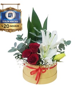 Kraft Kutuda Gül ve Beyaz Lilyum