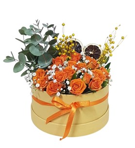 Kraft Kutuda Turuncu Gül Aranjmanı