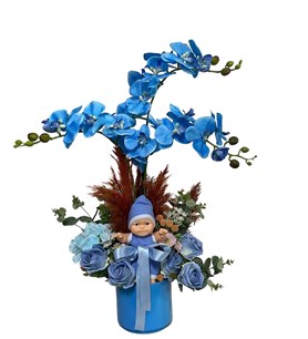 Mavi Yapay Orkide Bebek Aranjman