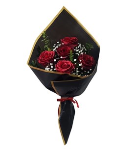Siyah Ambalajda 5 Kırmızı Gül buketi