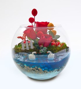 Cam Fanusta Kırmızı Gül Teraryumu (~17 cm)