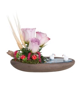 Kayık Saksıda Lila Gül Teraryumu (~22 cm)