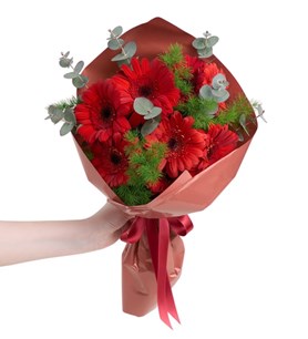 Kırmızı Gerbera Buketi 8 Adet