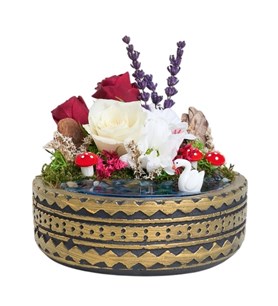 Ring Saksıda Kırmızı ve Beyaz Gül Teraryum (~15 cm)