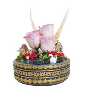 Ring Saksıda Lila Gül ve Buğday Teraryum (~15 cm)