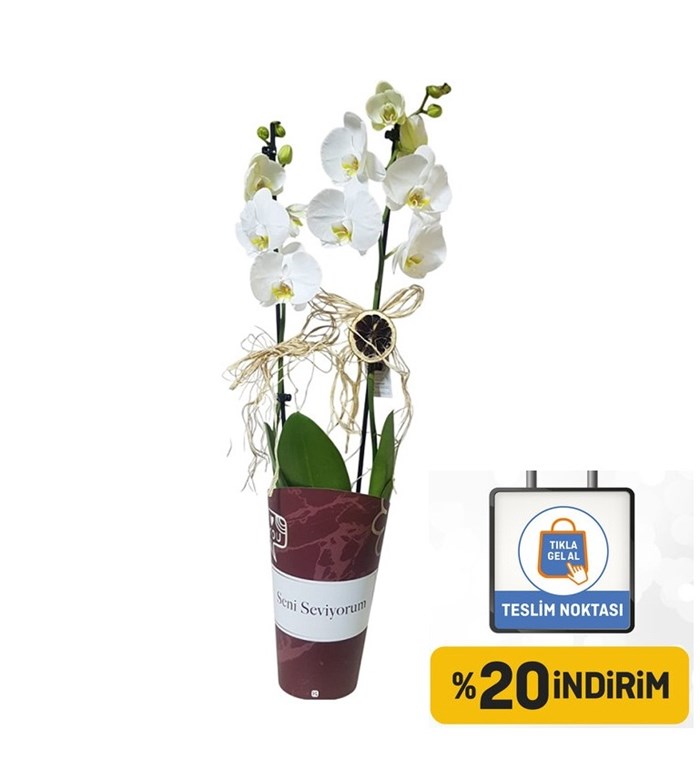 Orkide tasarım ekibimizce hazırlanan şık nude Seni seviyorum ambalajında çift dal beyaz phalaenopsis orkide sade görüntüsü asil duruşu ile sevdiklerinize harika bir hediye olacaktır.