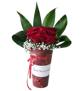 Sevdiklerinize Anlamlı bir çiçek hediye etmek istiyorsanız, Seni Seviyorum kuşe kağıtlı kırmızı gül aranjman