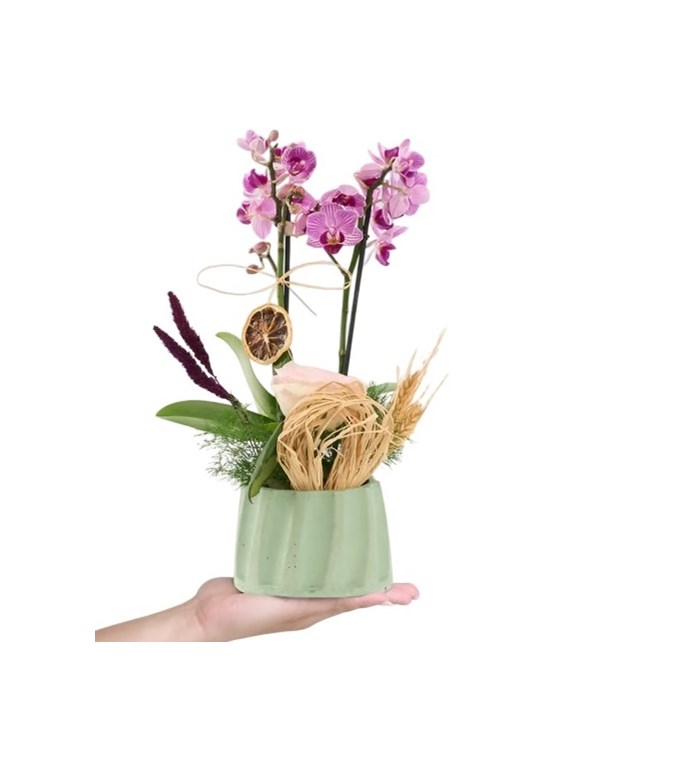 Turkuaz Sütun Saksıda Çiftli Mini Mor Orkide