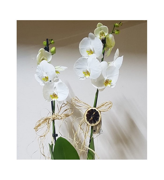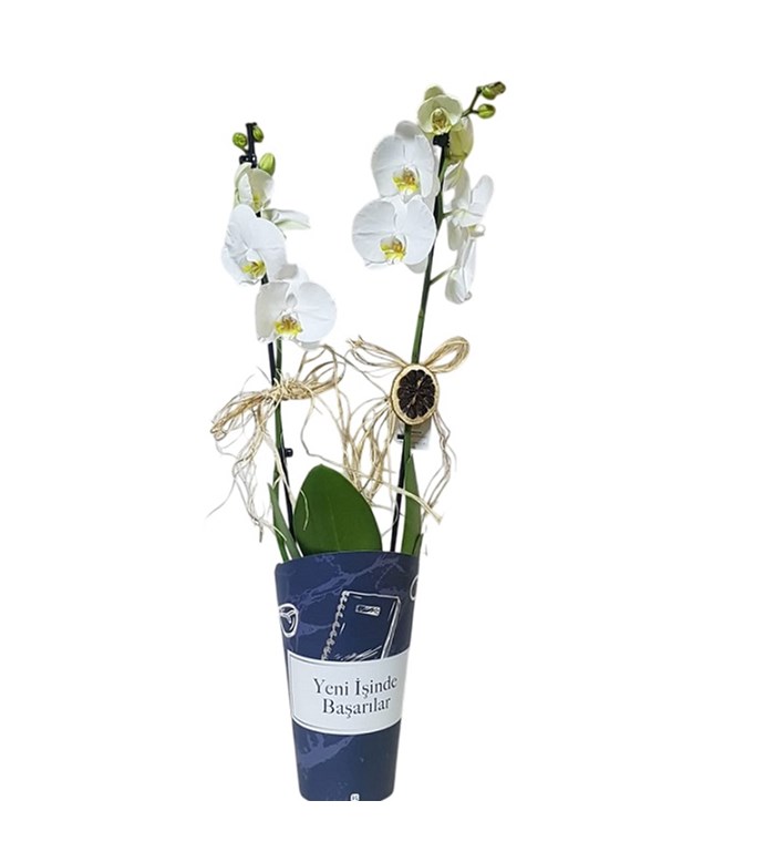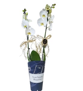 Orkide tasarım ekibimizce hazırlanan şık nude Yeni işinde başarılar ambalajında çift dal beyaz phalaenopsis orkide sade görüntüsü asil duruşu ile sevdiklerinize harika bir hediye olacaktır.